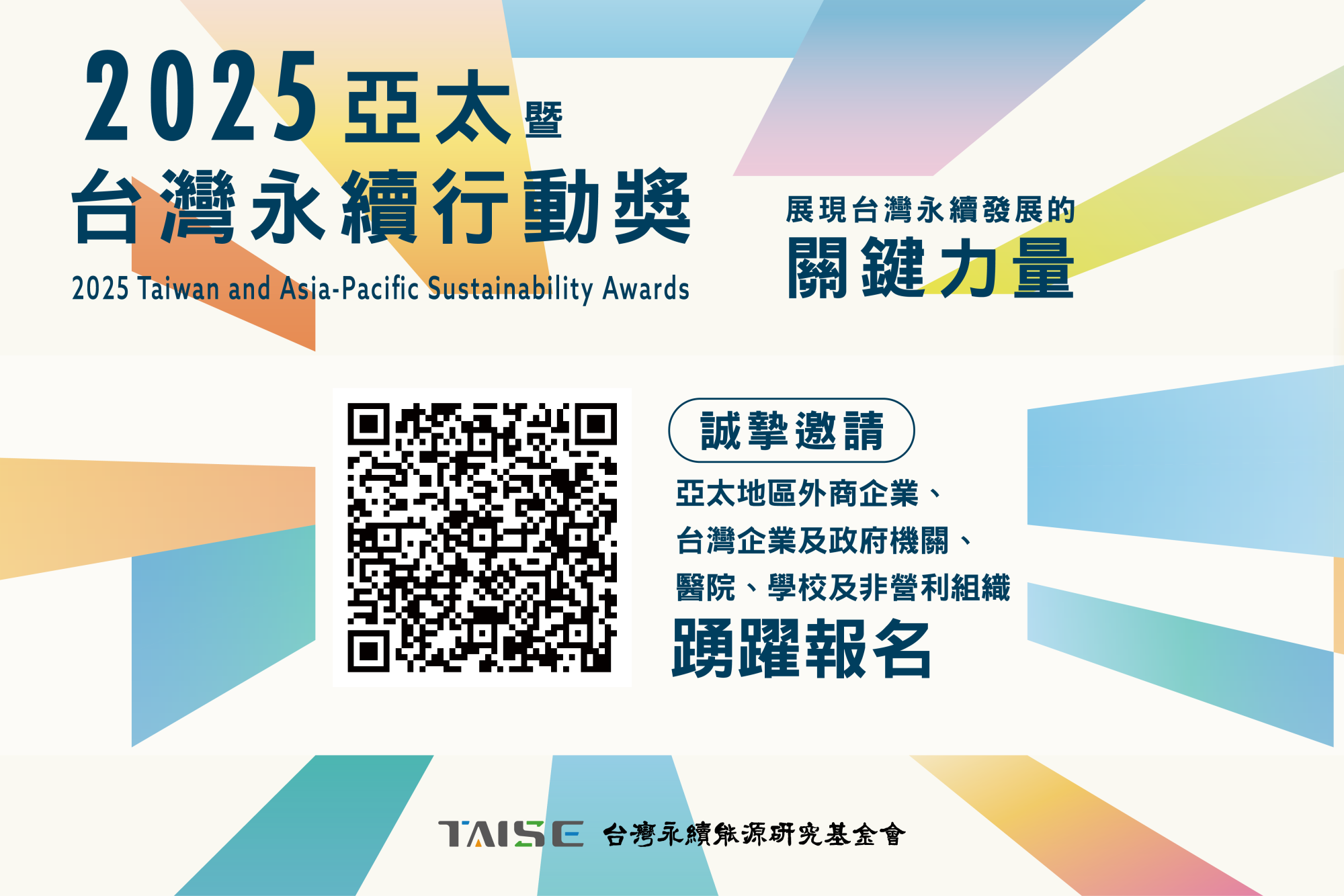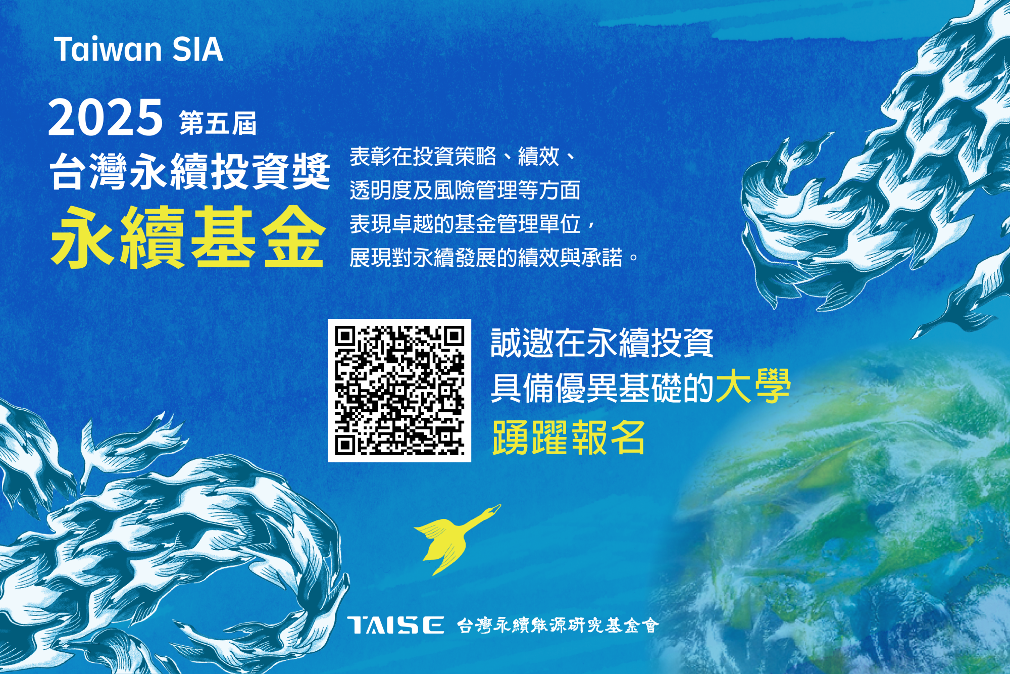 為表彰金融界與企業在永續投資領域的卓越貢獻,並為永續發展樹立典範,TAISE主辦2025第五屆台灣永續投資獎,誠邀金融機構、發行永續債券企業、基金投資運用單位及投資機構踴躍報名,與業界領袖一同在全球競爭中站穩腳步,展現永續投資績效,並創造更多正面的社會與環境影響。獎項開放徵件至5月15日,詳情請洽活動官網,或電洽02-2769-8968#201、204、207、210。