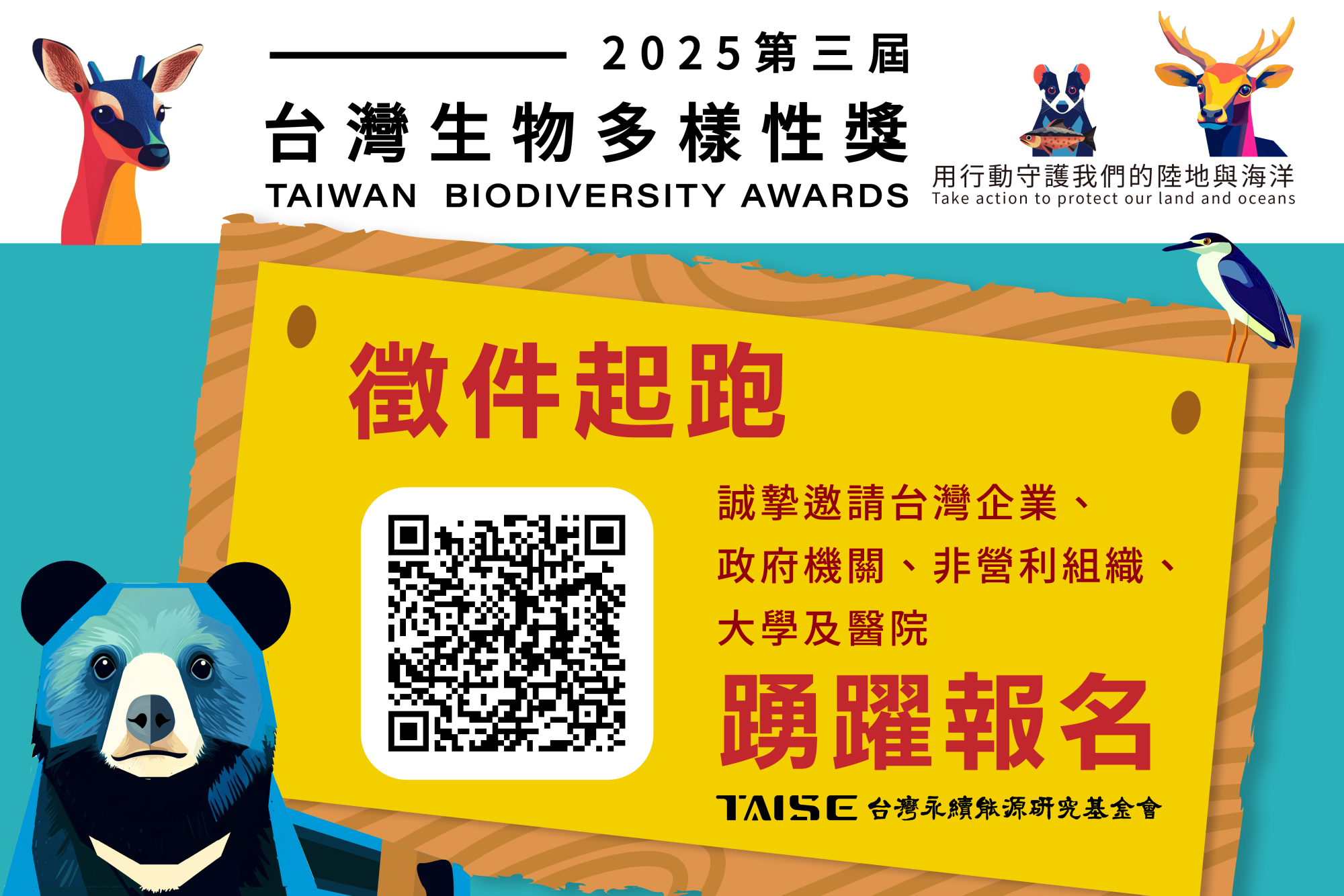全球超過一半的GDP依賴自然生態系統,TAISE為倡議維繫生物多樣性,主辦2025第三屆台灣生物多樣性獎,誠邀企業、大學、醫院、政府及NGO積極參與,展現我國在保護生物多樣性方面的努力與成果。評選鼓勵透過創新策略和具體行動,減少對生態系統的負面影響,並揭露對生物多樣性的依賴與衝擊,獎項開放報名至5月29日,詳情請洽官網,或電洽02-2769-8968#201、204、207、210。