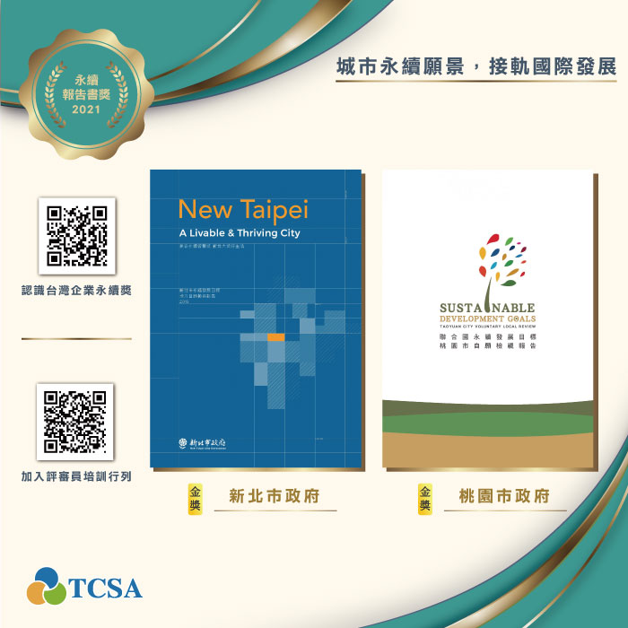 Review)。時至今日,世界上已經有60多個城市發布,台灣目前也有新北、臺北、桃園、臺中、宜蘭5份地方政府發布的VLR報告。當中桃園市及新北市更榮獲2021年TCSA的「地方政府永續發展自我檢視報告獎」,凸顯城市治理的重要性,也藉此跟人民的生活拉近距離,進而展現地方永續發展特色的未來願景。